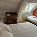 Notre chambre Ambre peut accueillir de 1 à 3 personnes. La chambre comprend un lit double et un lit simple. Vous aurez accès à deux salles de douches communes ainsi que des WC séparés communs. Le petit déjeuner, les serviettes ainsi que la taxe de séjour sont inclus dans le montant total.
