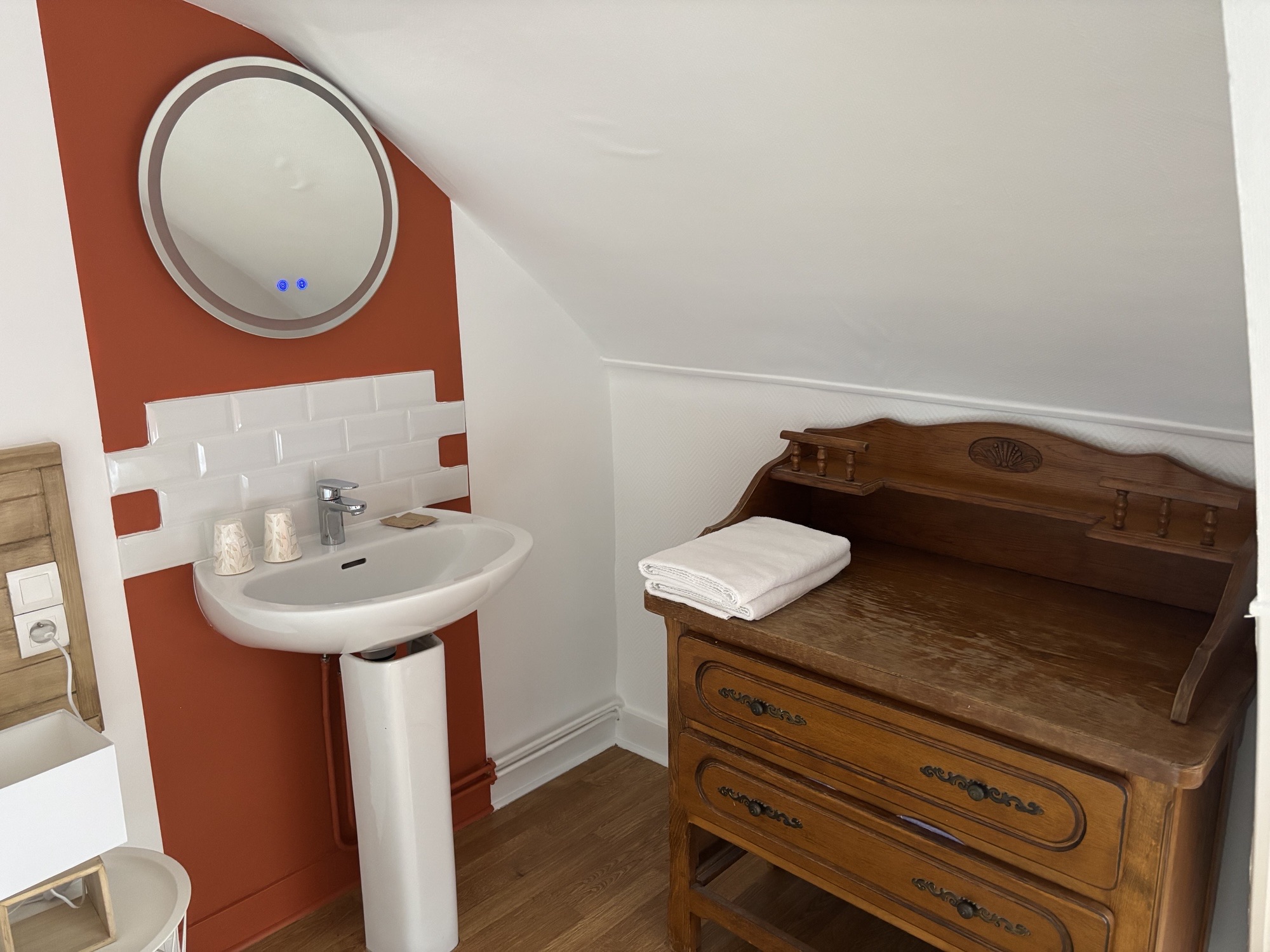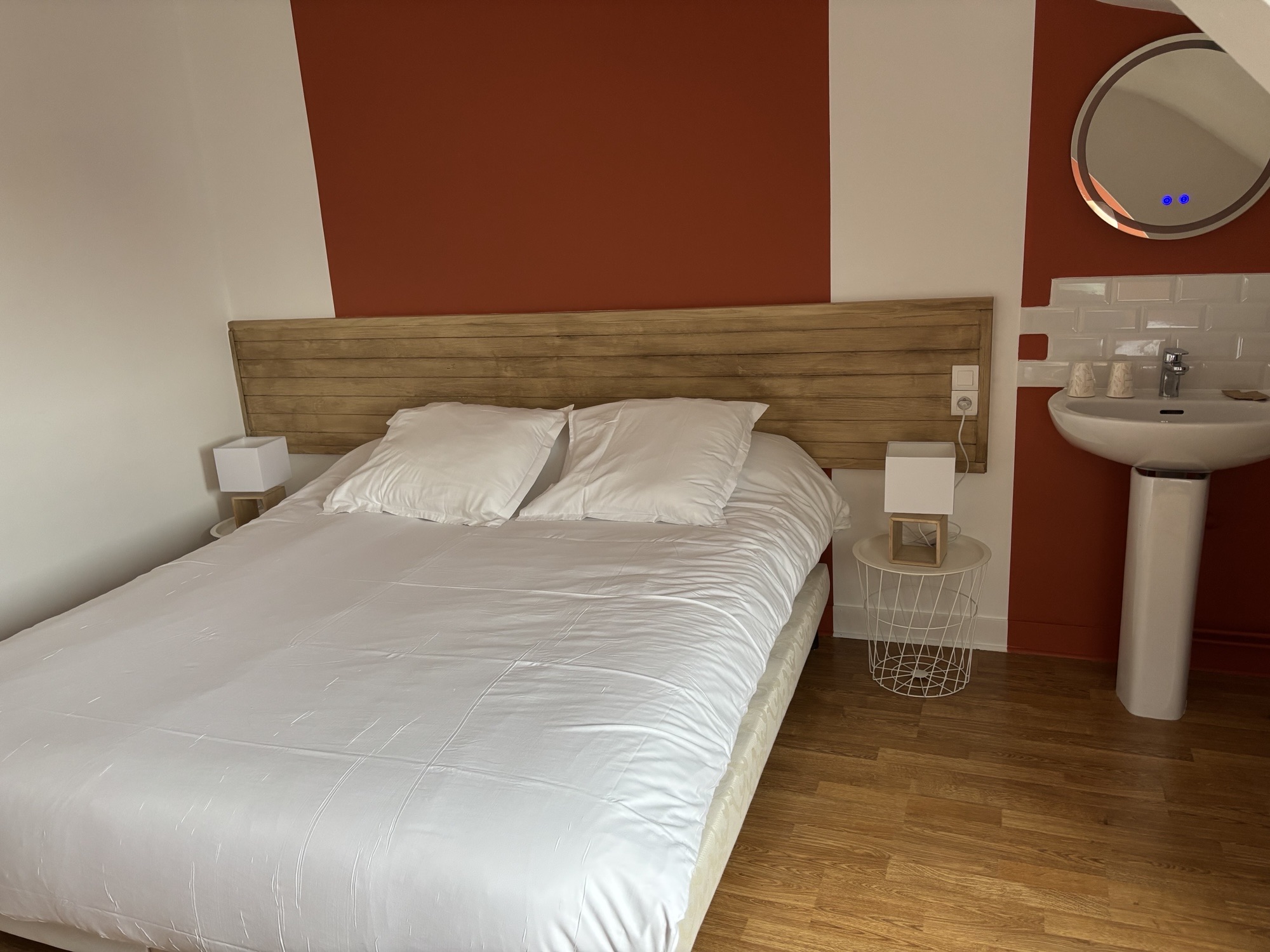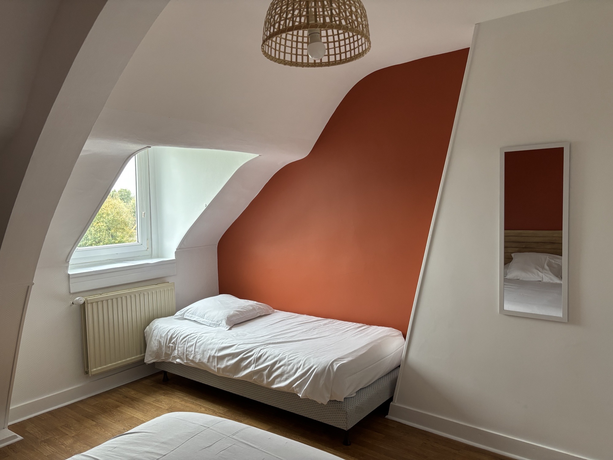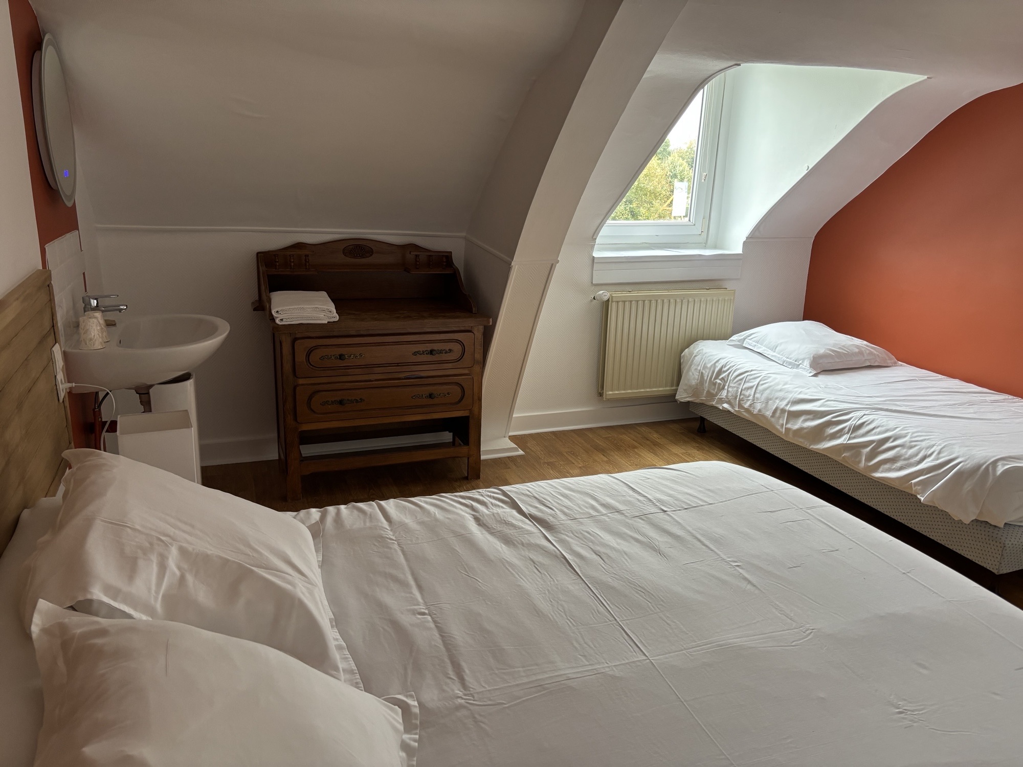 Notre chambre Ambre peut accueillir de 1 à 3 personnes. La chambre comprend un lit double et un lit simple. Vous aurez accès à deux salles de douches communes ainsi que des WC séparés communs. Le petit déjeuner, les serviettes ainsi que la taxe de séjour sont inclus dans le montant total.